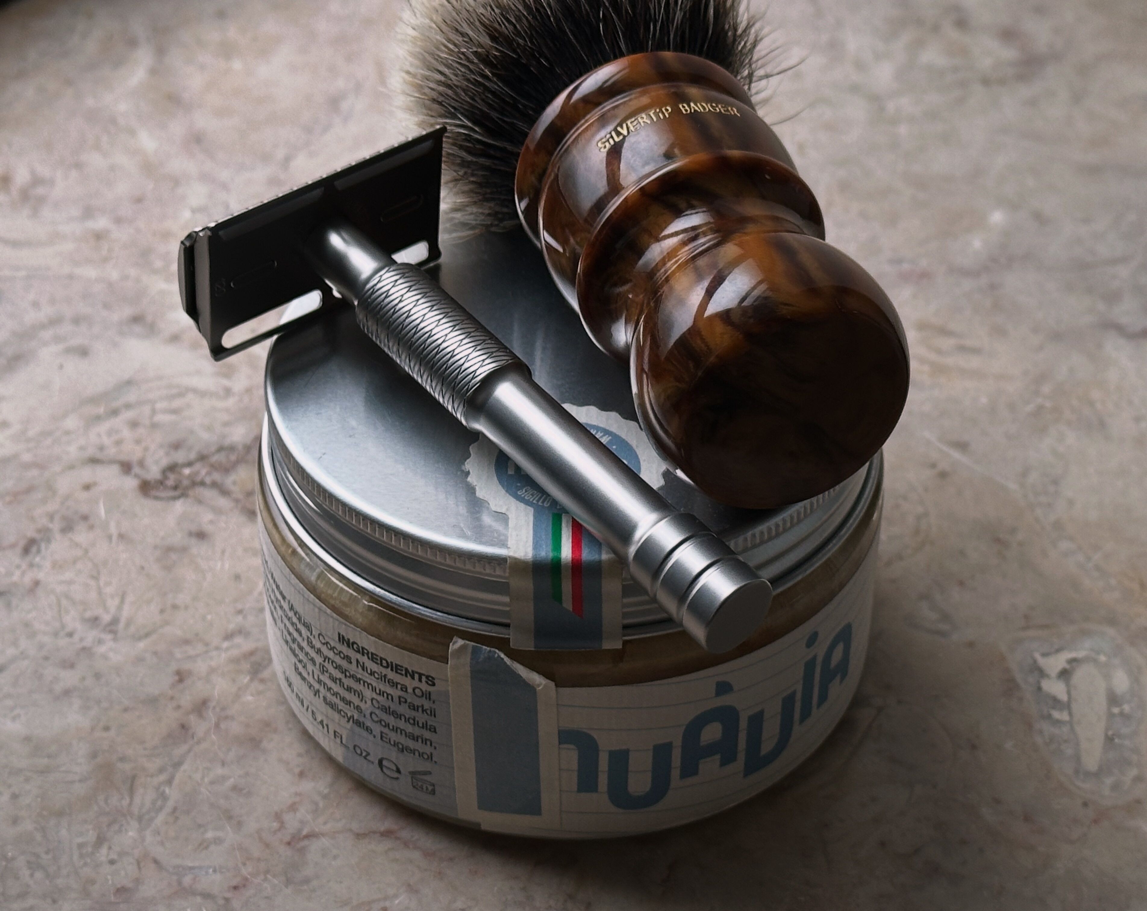 First use of the sheep’s milk soap as a pre wash, quickly produces a thick lather as a good base for the Tabac.Was in fact a very nice quick Shave with a very pleasing close finish.