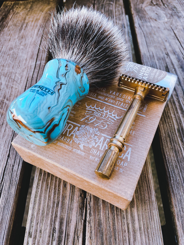 Tabac is up there for a shave soap for me, everything i need. Today the AP Brass whipped up a lovely lather, this little brush is working fine now with the reset knot.
